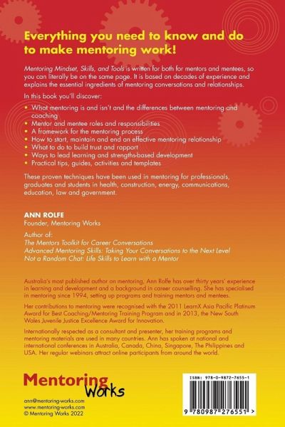 Mentoring Mindset, Skills and Tools is written for both for mentors and mentees, so you can literally be on the same page. It is based on decades of experience and explains the essential ingredients of mentoring conversations and relationships. In this book you'll discover: · What mentoring is and isn't and the differences between mentoring and coaching · Mentor and mentee roles and responsibilities · A framework for the mentoring process · How to start, maintain and end an effective mentoring relationship · What to do to build trust and rapport · Ways to lead learning and strengths-based development · Practical tips, guides, activities and templates These proven techniques have been used in mentoring for professionals, graduates and students in health, construction, energy, communications, education, law and government.