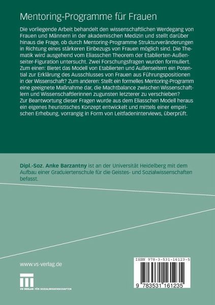 Die vorliegende Arbeit behandelt den wissenschaftlichen Werdegang von Frauen und Männern in der akademischen Medizin und stellt darüber hinaus die Frage, ob durch Mentoring-Programme Strukturveränderungen in Richtung eines stärkeren Einbezugs von Frauen möglich sind. Die Thematik wird ausgehend vom Eliasschen Theorem der Etablierten-Außenseiter-Figuration untersucht. Zwei Forschungsfragen wurden formuliert. Zum einen: Bietet das Modell von Etablierten und Außenseitern ein Potential zur Erklärung des Ausschlusses von Frauen aus Führungspositionen in der Wissenschaft? Zum anderen: Stellt ein formelles Mentoring-Programm eine geeignete Maßnahme dar, die Machtbalance zwischen Wissenschaftlern und Wissenschaftlerinnen zugunsten letzterer zu verschieben?