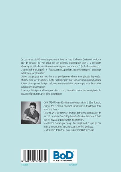 Cet ouvrage est dédié à toutes les personnes traitées par la corticothérapie (traitement médical à base de cortisone par voie orale) lors des poussées inflammatoires dues à la rectocolite hémorragique, et il offre aux détenteurs des ouvrages du même auteur : " Quelle alimentation pour la rectocolite hémorragique ? " et " Recettes et menus pour la rectocolite hémorragique" un ouvrage parfaitement complémentaire.
