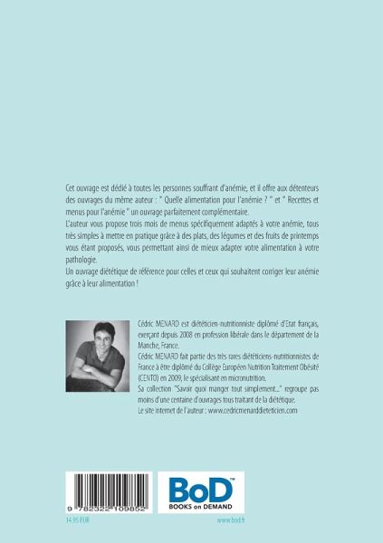 Cet ouvrage est dédié à toutes les personnes souffrant d'anémie, et il offre aux détenteurs des ouvrages du même auteur : " Quelle alimentation pour l'anémie ? " et " Recettes et menus pour l'anémie " un ouvrage parfaitement complémentaire. L'auteur vous propose trois mois de menus spécifiquement adaptés à votre anémie, tous très simples à mettre en pratique grâce à des plats, des légumes et des fruits de printemps vous étant proposés, vous permettant ainsi de mieux adapter votre alimentation à votre pathologie.