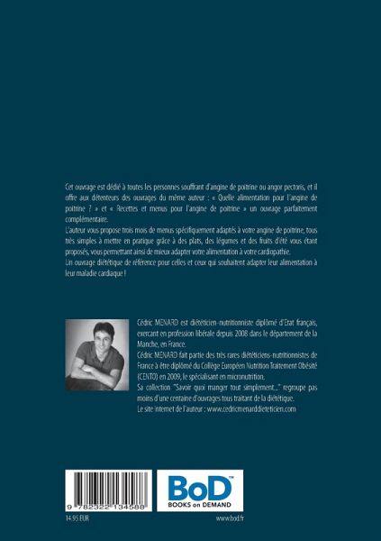 Cet ouvrage est dédié à toutes les personnes souffrant d'angine de poitrine ou angor pectoris, et il offre aux détenteurs des ouvrages du même auteur : " Quelle alimentation pour l'angine de poitrine ? " et " Recettes et menus pour l'angine de poitrine " un ouvrage parfaitement complémentaire.