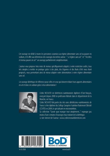 Cet ouvrage est dédié à toutes les personnes soumises au régime alimentaire sans sel ou pauvre en sodium, et il offre aux détenteurs des ouvrages du même auteur : " Le régime sans sel " et " Recettes et menus pauvre en sel " un ouvrage parfaitement complémentaire.