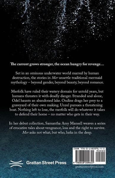 Set in an ominous underwater world marred by human destruction, the stories in Mer unsettle traditional mermaid mythology - beyond gender, beyond beauty, beyond romance. Merfolk have ruled their watery domain for untold years, but humans threaten it with deadly danger. Stranded and alone, Odel haunts an abandoned lake. Ondine drags her prey to a graveyard of their own making. Unzel pursues a threatening boat. Nothing left to lose, the merfolk will do whatever it takes to defend their home - no matter who gets in their way. In her debut collection, Samantha Amy Mansell weaves a series of evocative tales about vengeance, loss and the right to survive. Mer asks not what, but who, lurks in the deep.