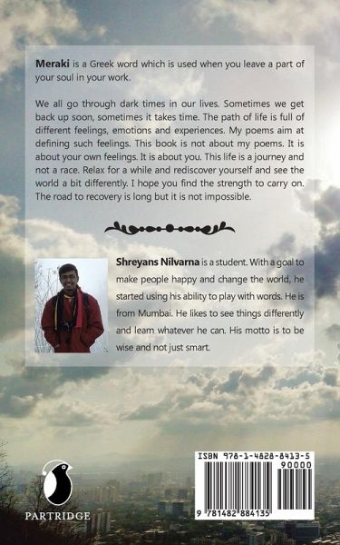 Meraki is a Greek word which is used when you leave a part of your soul in your work. We all go through dark times in our lives. Sometimes we get back up soon, sometimes it takes time. The path of life is full of different feelings, emotions and experiences. My poems aim at defining such feelings. This book is not about my poems. It is about your own feelings. It is about you. This life is a journey and not a race. Relax for a while and rediscover yourself and see the world a bit differently. I hope you find the strength to carry on. The road to recovery is long but it is not impossible.