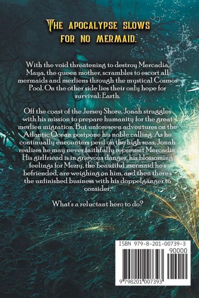 The apocalypse slows for no mermaid. With the void threatening to destroy Mercadia, the queen mother scrambles to escort all mermaids and merliens through the mystical Cosmos Pool portal. On the other side lies their only hope for survival: Earth. Off the coast of the Jersey Shore, Jonah fights to return to his human life. But unforeseen adventures on the Atlantic Ocean postpone his homecoming. His girlfriend is in grievous danger, his feelings for Mezzy (the fearless mermaid he's falling for) are blossoming, and there's still that unfinished business with his doppelgänger to deal with. What's a lifeguard turned sea creature to do? With the turning of the tides, worlds will collide. It's time to dive deep and get salty.