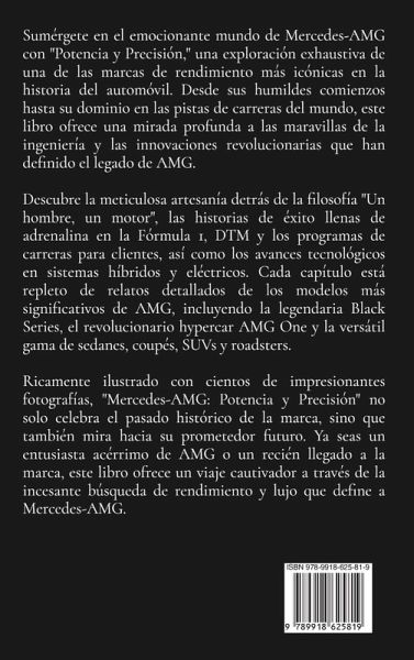 Sumérgete en el emocionante mundo de Mercedes-AMG con "Potencia y Precisión," una exploración exhaustiva de una de las marcas de rendimiento más icónicas en la historia del automóvil. Desde sus humildes comienzos hasta su dominio en las pistas de carreras del mundo, este libro ofrece una mirada profunda a las maravillas de la ingeniería y las innovaciones revolucionarias que han definido el legado de AMG. Descubre la meticulosa artesanía detrás de la filosofía "Un hombre, un motor", las historias de éxito llenas de adrenalina en la Fórmula 1, DTM y los programas de carreras para clientes, así como los avances tecnológicos en sistemas híbridos y eléctricos. Cada capítulo está repleto de relatos detallados de los modelos más significativos de AMG, incluyendo la legendaria Black Series, el revolucionario hypercar AMG One y la versátil gama de sedanes, coupés, SUVs y roadsters. Ricamente ilustrado con cientos de impresionantes fotografías, "Mercedes-AMG: Potencia y Precisión" no solo celebra el pasado histórico de la marca, sino que también mira hacia su prometedor futuro. Ya seas un entusiasta acérrimo de AMG o un recién llegado a la marca, este libro ofrece un viaje cautivador a través de la incesante búsqueda de rendimiento y lujo que define a Mercedes-AMG.