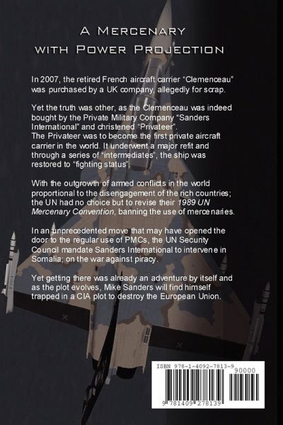 In 2007, the retired French aircraft carrier "Clemenceau" was purchased by a UK company, allegedly for scrap. Yet the true was other, as the Clemenceau was indeed bought by the Private Military Company "Sanders International" and christened "Privateer". In an unprecedented move that may have opened the door to the regular use of PMCs, the UN Security Council mandated Sanders International to intervene in Somalia; on the war against piracy. Yet getting there was already an adventure by itself and as the plot evolves, Mike Sanders will find himself trapped in a CIA plot to destroy the European Union.