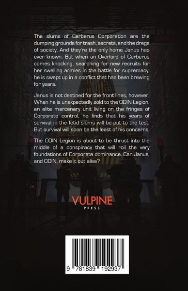 The slums of Cerberus Corporation are the dumping grounds for trash, secrets, and the dregs of society. And they're the only home Janus has ever known. But when an Overlord of Cerberus comes knocking, searching for new recruits for her swelling armies in the battle for supremacy, he is swept up in a conflict that has been brewing for years. Janus is not destined for the front lines, however. When he is unexpectedly sold to the ODIN Legion, an elite mercenary unit living on the fringes of Corporate control, he finds that his years of survival in the fetid slums will be put to the test. But survival will soon be the least of his concerns. The ODIN Legion is about to be thrust into the middle of a conspiracy that will roil the very foundations of Corporate dominance. Can Janus, and ODIN, make it out alive?