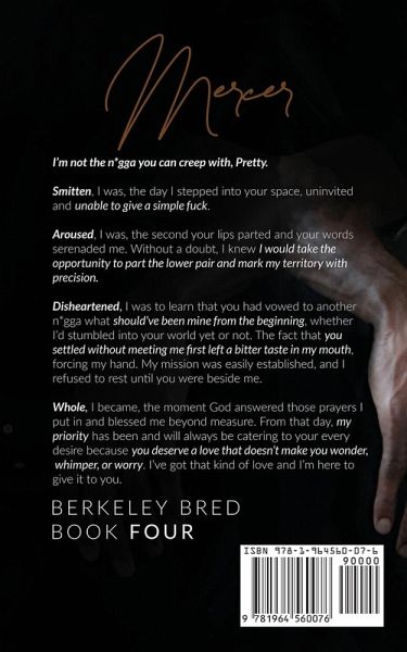 I'm not the n*gga you can creep with, Pretty. Smitten, I was, the day I stepped into your space, uninvited and unable to give a simple fuck. Aroused, I was, the second your lips parted and your words serenaded me. Without a doubt, I knew I would take the opportunity to part the lower pair and mark my territory with precision. Disheartened, I was to learn that you had vowed to another n*gga what should've been mine from the beginning, whether I'd stumbled into your world yet or not. The fact that you settled without meeting me first left a bitter taste in my mouth, forcing my hand. My mission was easily established, and I refused to rest until you were beside me. Whole, I became, the moment God answered those prayers I put in and blessed me beyond measure. From that day, my priority has been and will always be catering to your every desire because you deserve a love that doesn't make you wonder, whimper, or worry. I've got that kind of love and I'm here to give it to you.