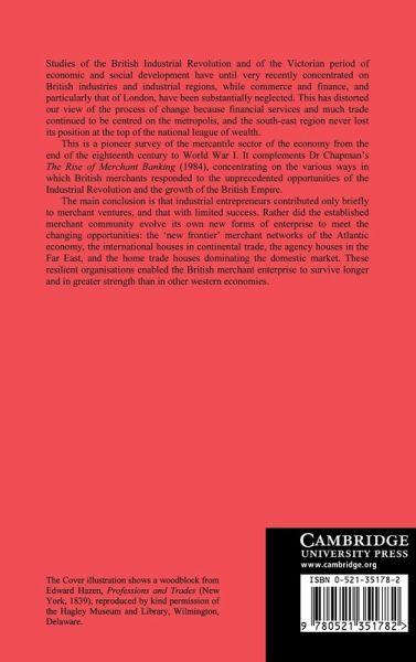 Studies of the British Industrial Revolution and of the Victorian period of economic and social development have until very recently concentrated on British industries and industrial regions, while commerce and finance, and particularly that of London, have been substantially neglected. This has distorted our view of the process of change because financial services and much trade continued to be centred on the metropolis, and the south-east region never lost its position at the top of the national league of wealth. This is a pioneer survey of the mercantile sector of the economy from the end of the eighteenth century to World War I. It complements Dr. Chapman's The Rise of Merchant Banking (1984), concentrating on the various ways in which British merchants responded to the unprecedented opportunities of the Industrial Revolution and the growth of the British Empire. The main conclusion is that industrial entrepreneurs contributed only briefly to merchant ventures, and that with limited success. Rather did the established merchant community evolve its own new forms of enterprise to meet the changing opportunities: the 'new frontier' merchant networks of the Atlantic economy, the international houses in continental trade, the agency houses in the Far East, and the home trade houses dominating the domestic market. These resilient organisations enabled the British merchant enterprise to survive longer and in greater strength than in other Western economies.
