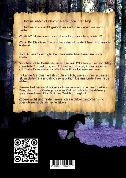 Hänsel und Gretel sind zurück! Und wieder laufen sie um ihr Leben...Kaum haben sie sich nach Jahren wiedergetroffen, werden sie auf eine Mission geschickt, die nicht nur neue Gefahren birgt, sondern auch viele altbekannte Bösewichte.Der Roman ist der erste Band der Fortsetzung von Hänsel und Gretel (und vieler anderer Märchen).Hier machen sich unsere Helden auf die Suche nach einer entführten Prinzessin und stellen fest, dass sich ihnen auf ihrer Mission noch ganz andere Abenteuer in den Weg stellen. Ihre Vergangenheit holt sie schneller ein, als ihnen lieb ist. Mach Dich gefasst auf eine wilde Jagd durch Merchien, das Land in dem Deine Geschichten ihr Unwesen treiben.Es geht buchstäblich um Leben und TOD."...und wenn sie nicht gestorben sind, dann überleben sie hoffentlich bis zum Finale der Trilogie."