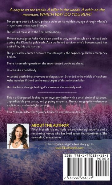 Alaskan death train. A killer unleashed. No one is safe. Ten passengers embark on a luxury train ride through Alaska's icy wilderness. Invited for this private expedition is Asha Kade, an investigator with a gritty past. None of them are aware of the impending danger that awaits them. As the train plunges through a desolate mountain pass, the journey turns deadly. A disfigured corpse on the tracks is just the beginning of a twisted game. A ruthless killer is stalking the carriages, murdering the passengers, one by one. Cut off from the world, trust derails, and dark secrets emerge. Panic grips them in a deathly hold, and everybody is a suspect. Can Asha outwit the predator hunting them all? Experience the chilling suspense in this gripping thriller by award-winning author, Tikiri Herath. WILL YOU SURVIVE THE RIDE? ------------------------------The Merciless Murder Mystery Thrillers Games of Life and Death: Private detective, Asha Kade, is ensnared in a deadly cat-and-mouse game. The stakes are her very life. And the reward is justice for the victims and solace for her haunted past. The Books:Merciless Legacy Merciless Games Merciless Crimes Merciless Lies Merciless Past Merciless Deaths How far would you go for a million dollars?