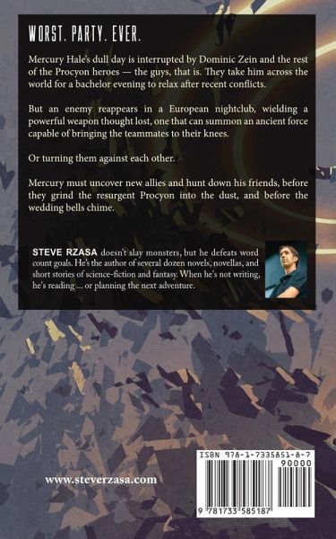 Worst. Party. Ever. Mercury Hale's dull day is interrupted by Dominic Zein and the rest of the Procyon heroes - the guys, that is. They take him across the world for a bachelor evening to relax after recent conflicts. But an enemy reappears in a European nightclub, wielding a powerful weapon thought lost, one that can summon an ancient force capable of bringing the teammates to their knees.Or turning them against each other. Mercury must uncover new allies and hunt down his friends, before they grind the resurgent Procyon into the dust, and before the wedding bells chime.