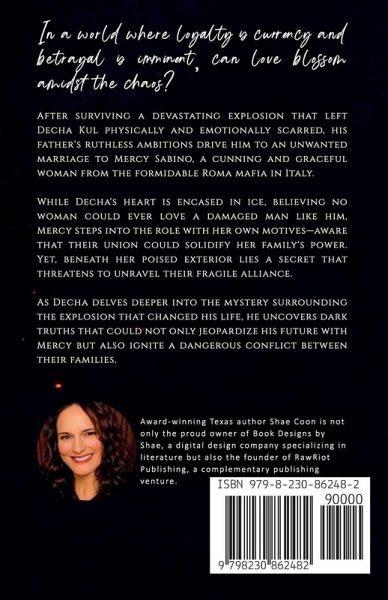 In the ashes of trust and treachery, could a forbidden spark of passion rewrite their fates, or will it burn them both to the ground? Decha Kul, scarred in body and soul by an explosion that left him shattered, is thrust into a marriage as volatile as the secrets it hides. He is chained to Mercy Sabino by his father's ruthless ambition. Mercy is a woman whose elegance is a weapon and cunning is her shield. As a key player in the powerful Roma Mafia, Mercy wields her charm like a blade. But beneath her charm, Mercy Sabino harbors her own scars and secrets. The type that could obliterate their fragile alliance. As Decha unravels the web of lies surrounding the inferno that scarred him, he uncovers truths dark enough to destroy their bond and ignite a war that could consume their worlds.