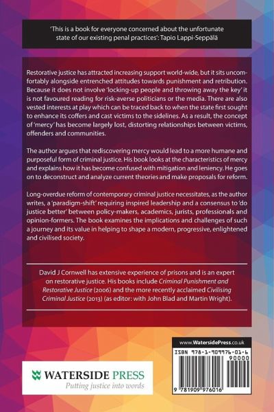 Restorative justice has attracted increasing support world-wide, but it sits uncomfortably alongside entrenched attitudes towards punishment and retribution. Because it does not involve 'locking-up people and throwing away the key' it is not favoured reading for risk-averse politicians or the media. There are also vested interests at play which can be traced back to when the state first sought to enhance its coffers and cast victims to the sidelines. As a result, the concept of 'mercy' has become largely lost, distorting relationships between victims, offenders and communities. 'This is a book for everyone concerned about the unfortunate state of our existing penal practices': Tapio Lappi-Seppälä. The author argues that rediscovering mercy would lead to a more humane and purposeful form of criminal justice. His book looks at the characteristics of mercy and explains how it has become confused with mitigation and leniency. He goes on to deconstruct and analyze current theories¿and make proposals for reform. Long-overdue reform of contemporary criminal justice necessitates, as the author writes, a 'paradigm-shift' requiring inspired leadership and a consensus to 'do justice better' between policy-makers, academics, jurists, professionals and opinion-formers. The book examines the implications and challenges of such a journey and its value in helping to shape a modern, progressive, enlightened and civilised society. Identifies a lost ingredient of criminal justice: shows where criminal justice 'went wrong' and why it needs to recover and change direction; contains important new proposals. Based on a lifetime's experience of prisons and dealing with prisoners of all kinds in the UK and abroad. David J Cornwell has extensive experience of prisons and is an expert on restorative justice. His books include Criminal Punishment and Restorative Justice (2006) and the more recently acclaimed Civilising Criminal Justice (2013) (as editor: with John Blad and Martin Wright). Tapio Lappi-Seppälä is Director General of the National Research Institute of Legal Policy and former senior legislative adviser on criminal law in Finland's Ministry of Justice.