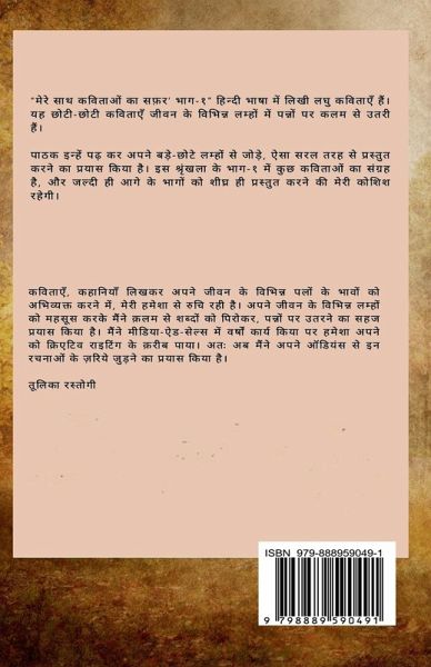 "Mere Saath Kavitaon Ka Safar" is a collection of my small poems written in Hindi.I have penned different moments of life in these poems.Hope by reading these poems you will enjoy, feel, and relate the moments.