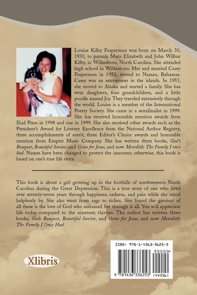 Meredith: The Family I Once Had follows the exploits and struggles of Meredith, a girl living at the foothills of northwestern North Carolina under the shadow of the Great Depression. As social unrest and economic failures spread around her, she easily gets worried about her future. With a stroke of luck, however, she gets acquainted with new people years later and finds her way climbing up society's long ladder, even penetrating the rich class. Despite moving away from poverty, Meredith feels somewhat empty deep inside as she remembers her family and the sufferings they all went through. She still has a strong faith in God and strong determination to hang on to. What does the future have left for Meredith?