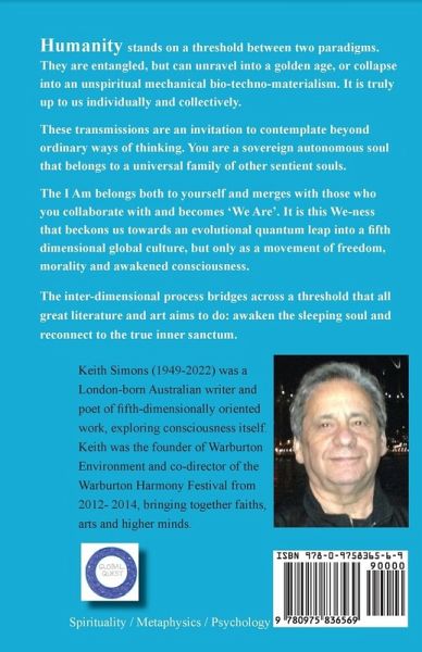 Humanity stands on a threshold between two paradigms. They are entangled, but can unravel into a golden age, or collapse into an unspiritual mechanical bio-techno-materialism. It is truly up to us individually and collectively. These transmissions are an invitation to contemplate beyond ordinary ways of thinking. You are a sovereign autonomous soul that belongs to a universal family of other sentient souls. Among this vast family there are especially meaningful connections. This is your more intimate soul family or soul-cluster. The I Am belongs both to yourself and merges with those who you collaborate with and becomes 'We Are'. It is this We-ness that beckons us towards an evolutional quantum leap into a fifth dimensional global culture but only as a movement of freedom, morality and awakened consciousness. The inter-dimensional process bridges across a threshold that all great literature and art aims to do: awaken the sleeping soul and reconnect to the true inner sanctum.