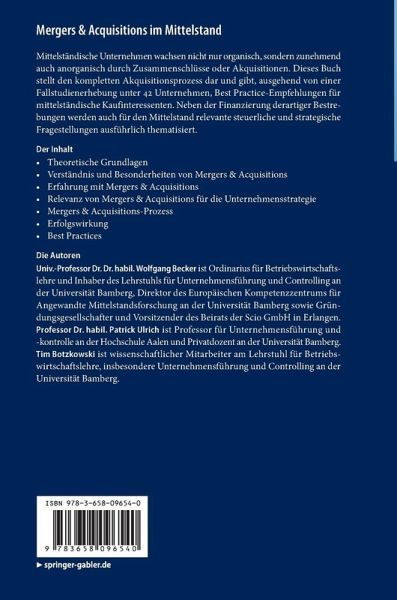 Dieses Buch stellt den kompletten Akquisitionsprozess dar und gibt, ausgehend von einer Fallstudienerhebung unter Unternehmen, Best Practice-Empfehlungen für mittelständische Kaufinteressenten. Neben der Finanzierung derartiger Bestrebungen werden auch für den Mittelstand relevante steuerliche und strategische Fragestellungen ausführlich thematisiert.