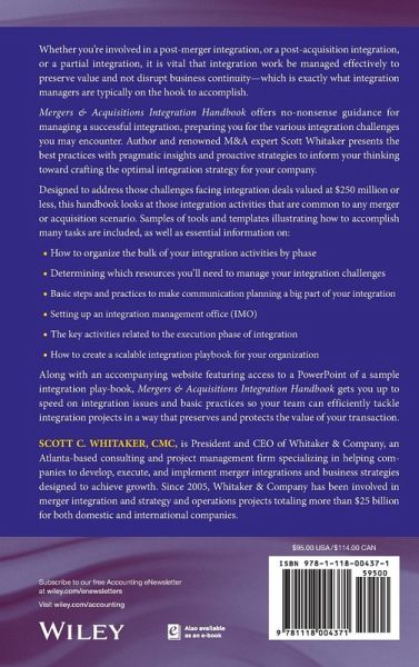Botched integration is the number one reason mergers fail. Mergers & Acquisitions Integration Handbook shows you how to develop, execute and implement merger integrations and business strategies to realize your organization's mergers and acquisitions goals.