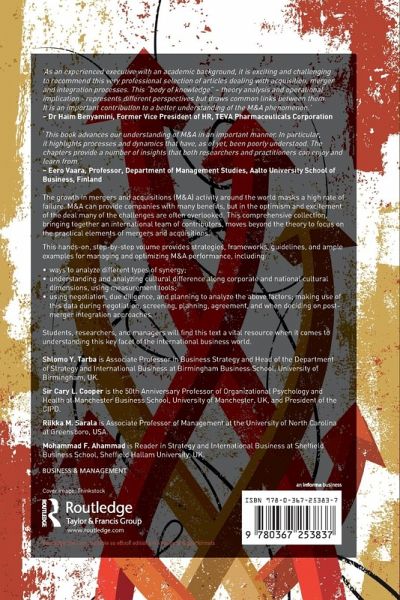 Shlomo Y. Tarba is Associate Professor in Business Strategy and Head of the Department of Strategy and International Business at Birmingham Business School, University of Birmingham, UK. Sir Cary L. Cooper is the 50th Anniversary Professor of Organizational Psychology and Health at Manchester Business School, University of Manchester, UK, and President of the CIPD. Riikka M. Sarala is Associate Professor of Management at the University of North Carolina at Greensboro, USA. Mohammad F. Ahammad is Reader in Strategy and International Business at Sheffield Business School, Sheffield Hallam University, UK.