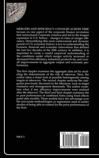 Mergers And Efficiency: Changes Across Time focuses on one aspect of the corporate finance revolution that restructured Corporate America and led to the longest expansion in U.S. history - changes in rates of merger efficiency. Demystifying this most controversial and dynamic period of U.S. economic history is key to understanding the business, financial and economic innovations that defined the last two decades of the 20th century. In addition, it is important to create a careful empirical understanding of the conditions under which merger activity increased or decreased firm efficiency, industrial productivity, and overall improvements in aggregate output and economic performance.
