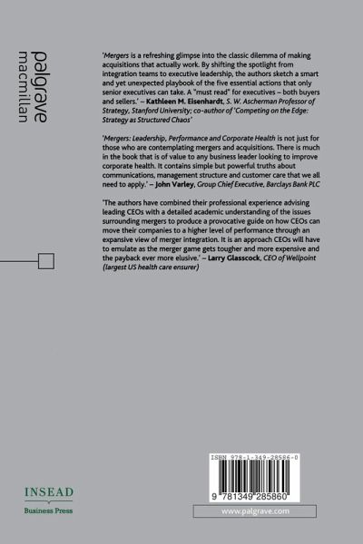 Drawing on their own extensive integration experience, the systematic analysis of 167 mergers, and cutting edge academic research, the authors of this book identify the common leadership challenges to be tackled for the achievement of what we call 'corporate health', the most thorough and sustainable test of merger success.