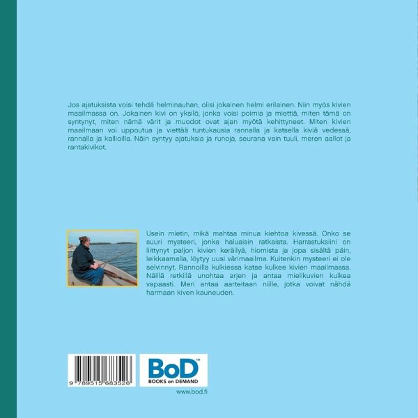 Jos ajatuksista ja unelmista voisi tehdä helminauhan, olisi jokainen helmi erilainen. Niin myös kivien maailmassa on. Jokainen kivi on yksilö, jonka voisi poimia ja miettiä, miten tämä on syntynyt, miten nämä värit ja muodot ovat ajan myötä kehittyneet. Miten kivien maailmaan voi uppoutua ja viettää tuntikausia rannassa ja katsella kiviä vedessä, rannalla ja kallioilla. Näin syntyy ajatuksia ja runoja seurana vain tuuli, meren aallot ja rantakivikot.