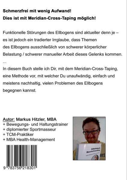 AUF DAUER SCHMERZFREI MIT WENIG AUFWAND!Dies ist mit Meridian-Cross-Taping möglich!Hast Du Spannungen und Schmerzen am Ellbogen, welche Dich in deinem Alltag und im Sport stark einschränken? Dieses Problem kann wahrlich zermürbend sein.Tennisellbogen und Golfer-Ellbogen sind häufige funktionelle Störungen des Bewegungsapparates, die sehr langwierig sein können und leider haben viele therapeutische Ansätze hier keine nachhaltige Lösung für Dich!In diesem Ratgeber stelle ich Dir die effektive und sehr zuverlässige Lösung aus dem Meridian-Cross-Taping für diesen Themenbereich vor. Mit dem einfachen Kleben von kleinen Cross-Patches (Gitter-Pflastern) kannst Du genau diesen Themen deines Ellbogens, oft nachhaltig und auf Dauer lösend, begegnen.Zusätzlich zu den Beeinflussungen mit den Cross-Patches findest Du ein optimierendes Hand-Mobility-Training am Ende dieses Buches. Dies lässt dich in wenigen Minuten täglicher Trainingszeit, auf Dauer fit und schmerzfrei am Ellbogen werden. Dennin der Regel sind es die alltäglichen Tätigkeiten unserer Hände, die Ungleichgewichte und Störungen des Ellbogens auslösen und die durch ein gezieltes Training optimiert werden können.Hole Dir dein Exemplar dieses kompakten und leicht verständlichen Ratgebers und beginne, mit oft sofortigem Effekt, deine Schmerzfrei-Journey am Ellbogen.