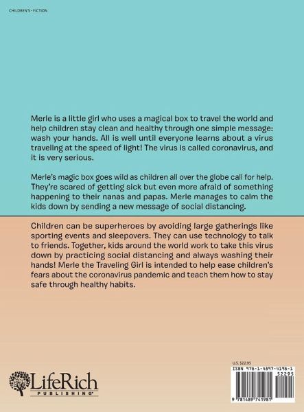 Merle is a little girl who uses a magical box to travel the world and help children stay clean and healthy through one simple message: wash your hands. All is well until everyone learns about a virus traveling at the speed of light! The virus is called coronavirus, and it is very serious. Merle's magic box goes wild as children all over the globe call for help. They're scared of getting sick but even more afraid of something happening to their nanas and papas. Merle manages to calm the kids down by sending a new message of social distancing. Children can be superheroes by avoiding large gatherings like sporting events and sleepovers. They can use technology to talk to friends. Together, kids around the world work to take this virus down by practicing social distancing and always washing their hands! Merle the Traveling Girl is intended to help ease children's fears about the coronavirus pandemic and teach them how to stay safe through healthy habits.