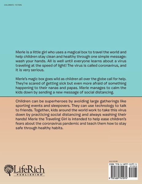 Merle is a little girl who uses a magical box to travel the world and help children stay clean and healthy through one simple message: wash your hands. All is well until everyone learns about a virus traveling at the speed of light! The virus is called coronavirus, and it is very serious. Merle's magic box goes wild as children all over the globe call for help. They're scared of getting sick but even more afraid of something happening to their nanas and papas. Merle manages to calm the kids down by sending a new message of social distancing. Children can be superheroes by avoiding large gatherings like sporting events and sleepovers. They can use technology to talk to friends. Together, kids around the world work to take this virus down by practicing social distancing and always washing their hands! Merle the Traveling Girl is intended to help ease children's fears about the coronavirus pandemic and teach them how to stay safe through healthy habits.