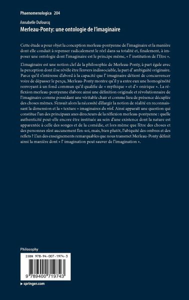 Section I. L'héritage husserlien et les premiers motifs de la réflexion de Merleau-Ponty : crise de la rationalité, monde onirique et risque de folie.- Chapitre 1. La crise moderne.- Chapitre 2. La plus grande trouvaille de Husserl selon Merleau-Ponty : le flux héraclitéen, entre raison et déraison.- Chapitre 3. Le problème de l'authenticité chez Merleau-Ponty : l'homme et le monde dissous par l'imaginaire ?.- Section II. Imagination, néant et inauthenticité chez Sartre.- Chapitre 1. La conscience est néant.- Chapitre 2. Image, imagination et imaginaire chez Sartre.- Chapitre 3. L'existence et le monde : une écume de néant à la surface de l'Etre.- Chapitre 4. La comédie de l'existence.- Remarque : le dépassement du dualisme entre Etre et Néant ébauché dans la philosophie sartrienne.- Section III. La définition merleau-pontyenne de l'imaginaire en tant que registre particulier aux côtés du réel.- Chapitre 1. Les reprises de la définition sartrienne de l'imaginaire par Merleau-Ponty, indissociables d'une critique de l'opposition entre Etre et Néant.- Chapitre 2. Critique par Merleau-Ponty de la conception sartrienne de l'imaginaire.- Chapitre 3. La présence véritable et même décuplée du réel dans l'imaginaire.- Chapitre 4. Proximité entre la redéfinition merleau-pontyenne de l'imaginaire et la réflexion de Bachelard.- Section IV. La conquête de l'authenticité.- Chapitre 1. L'amour imaginaire : un échec nécessaire et fécond. Définition générale de l'imaginaire comme institution.- Chapitre 2. Institutions et reprises créatrices dans une existence "authentique" - profonde et poétique.- Section V. L'imaginaire est la vraie Stiftung de l'Etre.- Chapitre 1. L'imaginaire comme introduction à l'ontologie puis comme modèle ontologique fondamental.- Chapitre 2. Une Urstiftung insaisissable : l'Etre comme déhiscence.- Chapitre 3. La profondeur aime les masques : l'Etre commejeu d'images.