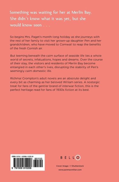 "She glanced at her watch. They would be in Merlin Bay in less than half an hour now. Her heart began to beat more quickly. Something was waiting for her at Merlin Bay. She didn't know what it was yet, but she would know soon-in a day, in a week, perhaps. Certainly, when she passed this spot again at the end of the visit, she would know why Michael had wanted her to go there." So begins Mrs. Paget's month-long holiday as she journeys with the rest of her family to visit her grown-up daughter Pen and her grandchildren, who have moved to Cornwall to reap the benefits of the fresh Cornish air. But teeming beneath the calm surface of seaside life lies a whole world of secrets, infatuations, hopes and dreams. Over the course of their stay, visitors and residents of Merlin Bay become entangled in each other's lives, disrupting the stability of Pen's seemingly calm domestic life. From the elderly Mrs. Paget, who visited the bay on her honeymoon nearly fifty years ago but who has never returned, to Pen's teenage daughter Stella, struggling to find her place in the world and feeling her first pangs of desire whilst her younger siblings play innocent childhood games on the beach, Crompton skilfully depicts the trials and tribulations of British domestic life. Will the hopes and desires of each family member be realized by the end of their stay? And what secret will Mrs. Paget unearth? Richmal Crompton's adult novels are an absolute delight and every bit as charming as her beloved Just William series. A nostalgic treat for fans of the gentler brand of interwar fiction, this is the perfect heritage read for fans of 1930s fiction at its best.