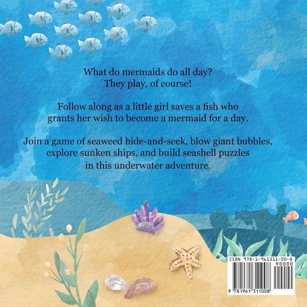 What do mermaids do all day? They play, of course! Follow along as a little girl saves a fish who grants her wish to become a mermaid for a day. Join a game of seaweed hide-and-seek, blow giant bubbles, explore sunken ships, and build seashell puzzles in this underwater adventure. Mermaid for a Day is a playful and imaginative book perfect for mermaid fans ages 2-10, and anyone who loves to dream of underwater worlds. With its charming rhymes and enchanting illustrations, this book is sure to inspire creativity and wonder in every reader. So, gather your friends and set sail for this unforgettable adventure!