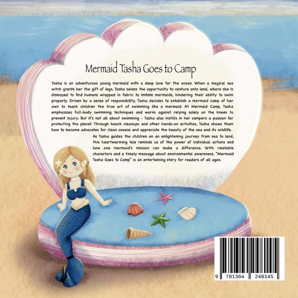 Tasha is an adventurous young mermaid with a deep love for the ocean and a longing to explore the world above the waves. When a magical sea witch grants her the gift of legs, Tasha seizes the opportunity to venture onto land for the first time. At camp, Tasha is dismayed to find humans wrapped in fabric to imitate mermaids, hindering their ability to swim properly. Driven by a sense of responsibility, Tasha decides to establish a mermaid camp of her own to teach children the true art of swimming like a mermaid. At Mermaid Camp, Tasha emphasizes full-body swimming techniques and warns against relying solely on the knees to prevent injury. But it's not all about swimming - Tasha also instills in her campers a passion for protecting the planet. Through beach cleanups and other hands-on activities, Tasha shows them how to become advocates for clean oceans and appreciate the beauty of the sea and its wildlife. As Tasha guides the children on an enlightening journey from sea to land, this heartwarming tale reminds us of the power of individual actions and how one mermaid's mission can make a difference. With relatable characters and a timely message about environmental awareness, "Mermaid Tasha Goes to Camp" is an entertaining story for readers of all ages.