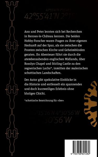 Ann und Peter lernten sich bei Recherchen in Rennes-le-Château kennen. Die beiden Hobby-Forscher waren Fragen zu ihrer eigenen Herkunft auf der Spur, als sie zwischen die Fronten zwischen Kirche und Geheimbünden geraten. Ihr Abenteuer führt sie durch die atemberaubenden englischen Midlands, über Rosslyn Chapel und Stirling Castle zu den regnerischen Lochs_, inmitten der malerischen schottischen Landschaften. Der Autor gibt spekulative Einblicke in die Historie und entfesselt ein spannendes und doch kurzweiliges Erlebnis ohne blutiges Chichi._schottische Bezeichnung für See