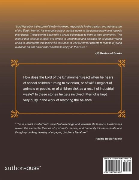 How does the Lord of the Environment react when he hears of school children turning to extortion, or of wilful neglect of animals or people, or of children sick as a result of industrial waste? In these stories he gets involved! Merriol is kept very busy in the work of restoring the balance. "Lord Hycarbox is the Lord of the Environment, responsible for the creation and maintenance of the Earth. Merriol, his energetic helper, travels down to the people below and records their deeds. These stories begin with a wrong being done to them or their community. The morals that arise as a result are simple to understand and possible for all people young or old to incorporate into their lives This book is well suited for parents to read to a young audience as well as for older children to enjoy on their own." -US Review of Books "This is a work instilled with important teachings and valuable life lessons. Hashmi has woven the elemental themes of spirituality, nature, and humanity into an intricate and thought-provoking tapestry of engaging children's literature." -Pacific Book Review
