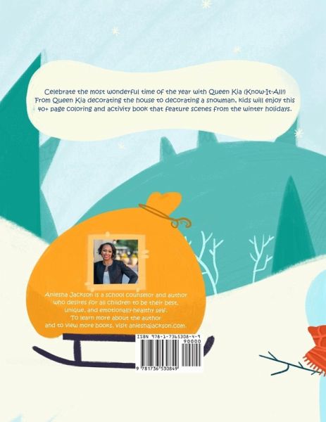 Celebrate the winter holidays with Queen Kia! Merry and Bright with Queen Kia features 50+ adorable, festive, and custom-made illustrations and activities that features scenes from the most wonderful time of the year. Queen Kia can be seen baking cookies for Santa, decorating the house, singing Feliz Navidad, and celebrating Kwanzaa. Merry and Bright will brighten up any child's holiday season. Features IncludeUnique and fun illustrations featuring Santa, snowmen, family dinners, and more! Illustration are printed on one side to prevent bleed through 8.5x11 coloring pages Printed on bright white paper Gift this adorable and jam-packed holiday book to any child ages 4-12.