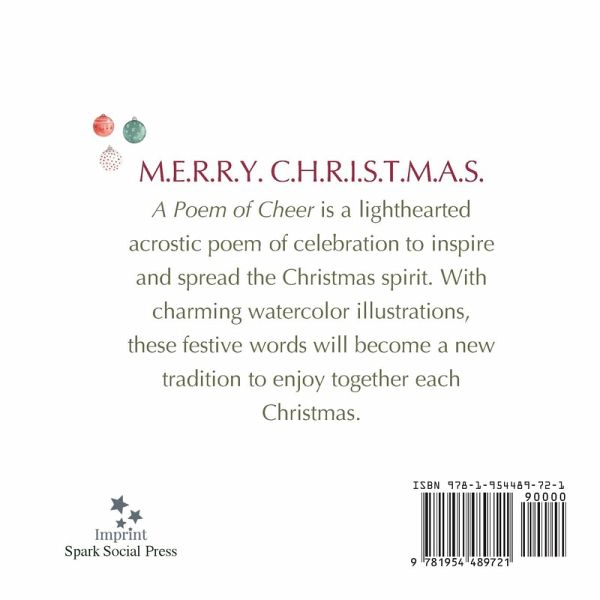 A poem of celebration to inspire and spread the Christmas spirit. With charming watercolor illustrations, these festive words will become a new tradition to enjoy together each Christmas.