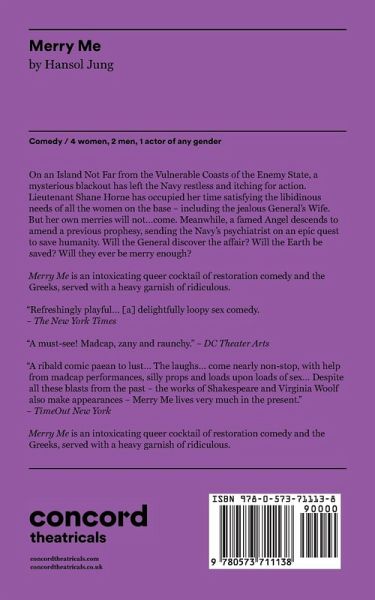 On an island not far away from the vulnerable coasts of the enemy state, a mysterious blackout has left the Navy restless and itching for action. Lieutenant Shane Horne has occupied her time satisfying the libidinous needs of all the women on the base - including the jealous general's wife. But her own merries will not... come. Meanwhile, a famed Angel re-descends to amend her previous prophesy, sending the Navy's psychiatrist on an epic quest to save humanity. Will the general discover the affair? Will the earth be saved? Will they ever be merry enough? Merry Me is an intoxicating queer cocktail of restoration comedy and the Greeks, served with a heavy garnish of ridiculous.