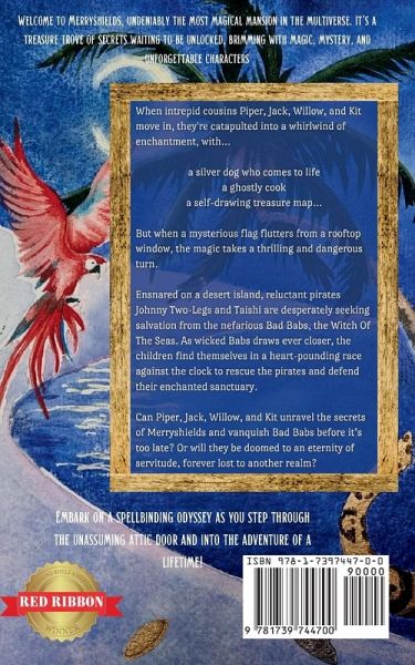 What if you opened an ordinary door in the attic and discovered a desert island, complete with palm trees, parrots... and pirates? Merryshields isn't your average country house - it's massive, mysterious, and undoubtedly the most magical mansion the world has ever seen. Hidden deep in the countryside, abandoned for years, it is surrounded by trees and filled with secrets bursting to be discovered. When cousins Piper, Jack, Willow and Kit move into Merryshields, the magic is beyond exciting... at first. A silver dog?! A ghostly cook?! A self-drawing map that shows treasure?! But then the cousins spy a flag waving from a window high among the rooftops and before they know it, the magic of Merryshields begins to intensify... Behind the attic room door, pirates Johnny Two-Legs and Taishi are awaiting rescue from Bad Babs, the Witch of the Seas, who raises storms, senses gold and steals children. But before Piper, Jack, Willow and Kit can rescue them and save Merryshields, they find themselves trapped as Babs sails nearer - and her sights are set firmly on the Merryshields treasure that she can sense through the waving palms... Can the children save themselves and their beloved magical house? Or will they be trapped forever in a strange world, working as slaves for Bad Babs Bembridge's evil empire?