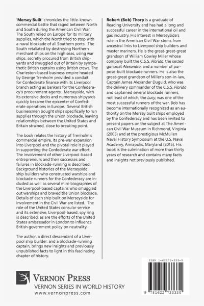 'Mersey Built' chronicles the little-known commercial battle that raged between North and South during the American Civil War. The South relied on Europe for its military supplies, which the North tried to stop with a naval blockade of all Southern ports. The South retaliated by destroying Northern merchant ships on the high seas, using war ships, secretly procured from British shipyards and smuggled out of Britain by sympathetic British captains using British crews. The Charleston-based business empire headed by George Trenholm provided a conduit for Confederate finance with its Liverpool branch acting as bankers for the Confederacy's procurement agents. Merseyside, with its extensive docks and numerous shipyards quickly became the epicenter of Confederate operations in Europe. Several British businessmen bought ships specifically to run supplies through the Union blockade, leaving relationships between the United States and Britain strained, close to breaking point. The book relates the history of Trenholm's commercial empire, its pre-war expansion into Liverpool and the pivotal role it played in supporting the Confederate war effort. The involvement of other Liverpool-based entrepreneurs and their successes and failures in blockade-running is described. Background histories of the Merseyside ship builders who constructed warships and blockade runners for the Confederacy are included as well as several mini-biographies of the Liverpool-based captains who smuggled out warships and braved the Union blockade. Details of each ship built on Merseyside for involvement in the Civil War are listed. The role of the United States consular service and its extensive, Liverpool-based, spy ring is described, as are the efforts of the United States ambassador in London to influence British government policy on neutrality. The author, a direct descendant of a Liverpool ship builder, and a blockade-running captain, brings new insights and previously unpublished facts to light in this fascinating chapter of history.