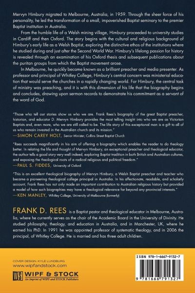 Mervyn Himbury migrated to Melbourne, Australia, in 1959. Through the sheer force of his personality, he led the transformation of a small, impoverished Baptist seminary to the premier Baptist institution in Australia. From the humble life of a Welsh mining village, Himbury proceeded to university studies in Cardiff and then Oxford. The story begins with the cultural and religious background of Himbury's early life as a Welsh Baptist, exploring the distinctive ethos of the institutions where he studied during and just after the Second World War. Himbury's lifelong passion for history is revealed through an examination of his Oxford thesis and subsequent publications about the puritan groups from which the Baptist movement arose. In Melbourne, he quickly became known as a brilliant preacher and media presenter. As professor and principal of Whitley College, Himbury's central concern was ministerial education that would serve the churches in a rapidly changing world. For Himbury, the central task of ministry was preaching, and it is with this dimension of his life that the biography begins and concludes, drawing upon sermon records to demonstrate his commitment as a servant of the word of God.