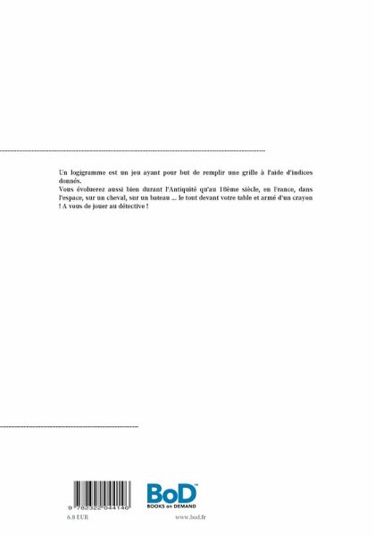 Un logigramme est un jeu ayant pour but de remplir une grille à l'aide d'indices donnés.Vous évoluerez aussi bien durant l'Antiquité qu'au 18ème siècle, en France, dans l'espace, sur un cheval, sur un bateau ... le tout devant votre table et armé d'un crayon ! A vous de jouer au détective !