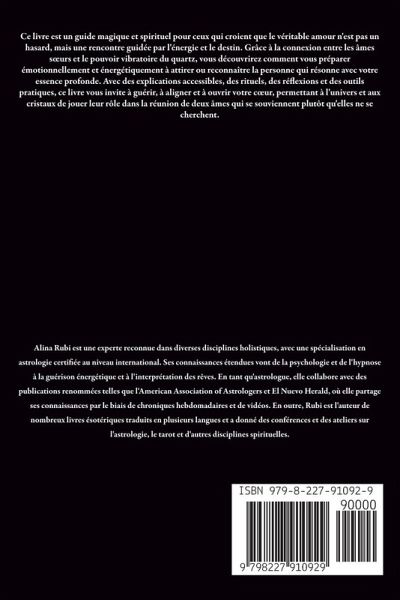 Ce livre est un guide magique et spirituel pour ceux qui croient que le véritable amour n'est pas un hasard, mais une rencontre guidée par l'énergie et le destin. Grâce à la connexion entre les âmes surs et le pouvoir vibratoire du quartz, vous découvrirez comment vous préparer émotionnellement et énergétiquement à attirer ou reconnaître la personne qui résonne avec votre essence profonde. Avec des explications accessibles, des rituels, des réflexions et des outils pratiques, ce livre vous invite à guérir, à aligner et à ouvrir votre cur, permettant à l'univers et aux cristaux de jouer leur rôle dans la réunion de deux âmes qui se souviennent plutôt qu'elles ne se cherchent.