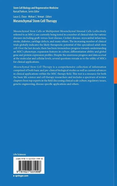 The extensive number of ongoing clinicaltrials is expected to provide a clearer path forward for the realization and implementation of MSCs in regenerative medicine. Towards this end, reviews of current clinical trial results and discussions of relevant topics association with the clinical application of MSCs are compiled in this book from some of the leading researchers in this exciting and rapidly advancing field. Although not absolutely all-inclusive, we hope the chapters within this book can promote and enable a better understanding of the translation of MSCs from bench-to-bedside and inspire researchers to further explore this promising and quickly evolving field.