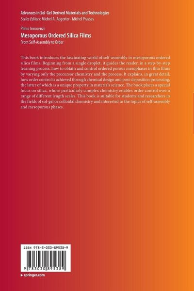 This book introduces the fascinating world of self-assembly in mesoporous ordered silica films. Beginning from a single droplet, it guides the reader, in a step-by-step learning process, how to obtain and control ordered porous mesophases in thin films by varying only the precursor chemistry and the process. It explains, in great detail, how order control is achieved through chemical design and post-deposition processing, the latter of which is a unique property in materials science. The book places a special focus on silica, whose particularly complex chemistry enables order control over a range of different length scales. This book is suitable for students and researchers in the fields of sol-gel or colloidal chemistry and interested in the topics of self-assembly and mesoporous phases.