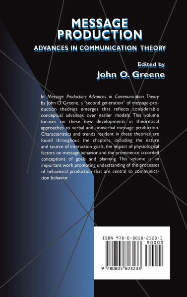 Contents: G.G. Sparks Foreword. Part I:Theories of Message Production: Historical Context Future Prospects.J.O. Greene Introduction: Advances in Theories of Message Production. S.R. Wilson Developing Theories of Message Production: The Next Generation. Part II:Intra-Individual Coherence and Coordination.J.P. Dillard Explicating the Goal Construct: Tools for Theorists. J.R. Meyer Cognitive Influences on the Ability to Address Interaction Goals. S.A. McCornack The Generation of Deceptive Messages: Laying the Groundwork for a Viable Theory of Interpersonal Deception. S. Kemper M.L. Hummert New Directions in Research on Aging and Message Production. J.O. Greene A Second Generation Action Assembly Theory. D. Hample Framing Message-Production Research with Field Theory. Part III: Inter-Individual Coherence and Coordination.V.R. Waldron Toward a Theory of Interactive Conversational Planning. C.R. Berger Producing Messages Under Uncertainty. R.E. Sanders The Production of Symbolic Objects as Components of Larger Wholes. J.K. Burgoon C.H. White Researching Nonverbal Message Production: A View From Interaction Adaptation Theory. R. Buck From DNA to MTV: The Spontaneous Communication of Emotional Messages.