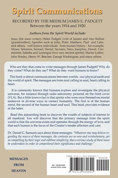 This book is based on messages from Jesus and other Celestial spirits recorded by James Padgett between 1914 and 1920. Padgett, a lawyer in Washington, DC, is practically unknown, and yet recorded vitally important messages from Spirits who desire humanity to realize the truth about life and death that Christianity is not teaching. Jesus brings again the truths of his message and mission from his work on earth 2000 years ago. Dr. D. Samuels says about these messages: "Whatever one may believe regarding the source of these messages, the contents are so new and revolutionary, yet so compelling by their logic and sublime simplicity, that a serious study of them must be undertaken in order to comprehend their significance and challenge." Accept the challenge and investigate for your self the astounding good news of God's Great Love presented in these messages from heaven. God's Love is the Divine Love; it has real substance and when received into the soul will change the soul and complete our creation.
