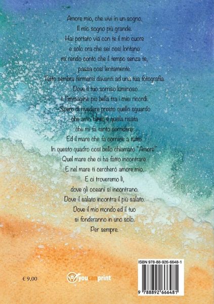Questa è la storia di un amore vissuto in mare, tra le onde, il vento ed il sole sulla pelle. Un amore che non chiese di sbocciare. Un amore che vi voglio raccontare..." è così che inizia la raccolta di poesie che descrive una storia d'amore nata per caso su di una spiaggia, tra due persone provenienti da due mondi diversi e nonostante le loro diversità questo amore perdurerà nel tempo nonostante tutto.